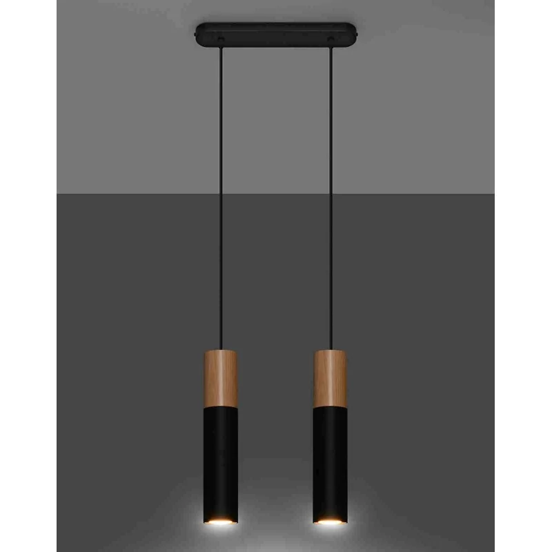 Lampa wisząca czarno drewniana 2xGU10 PABLO SL.0633 SOLLUX