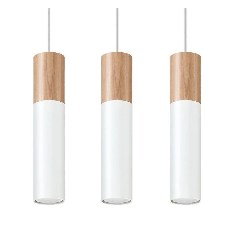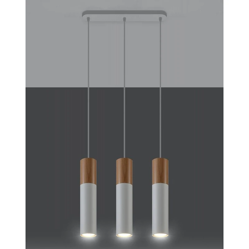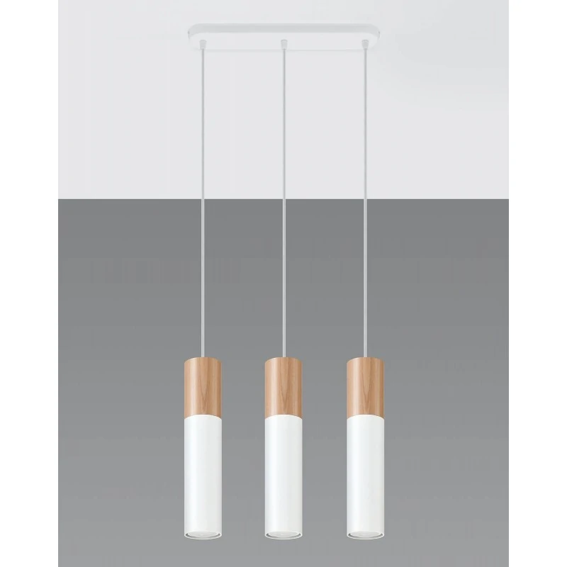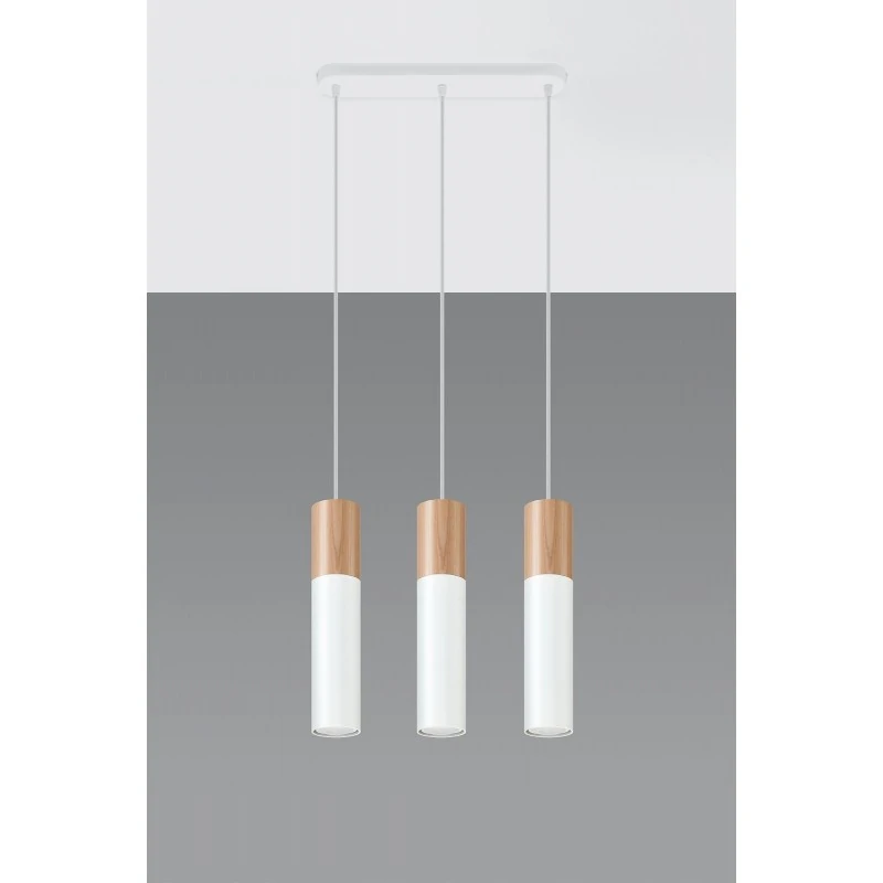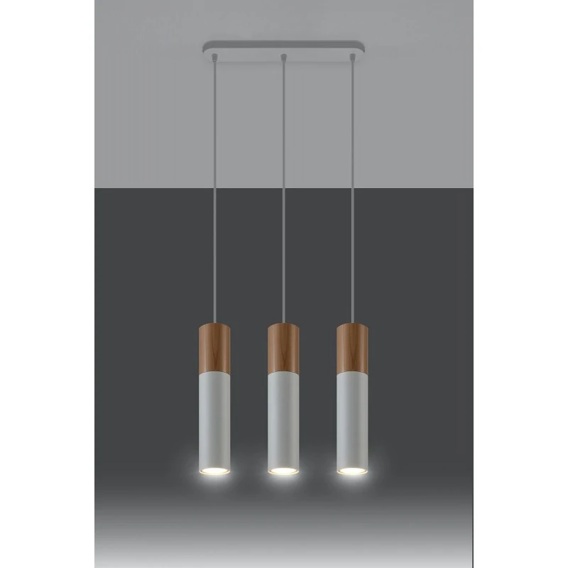 SL.0630 Lampa wisząca 3 tuby białe z drewnianą wstawką PABLO 3L GU10 SOLLUX