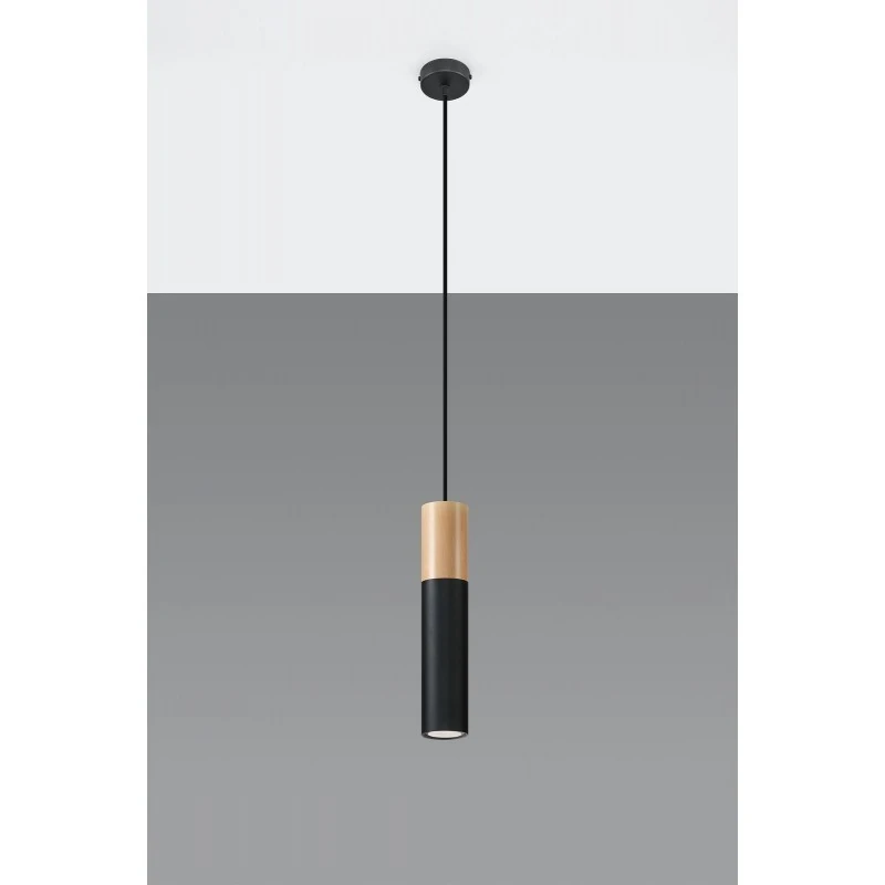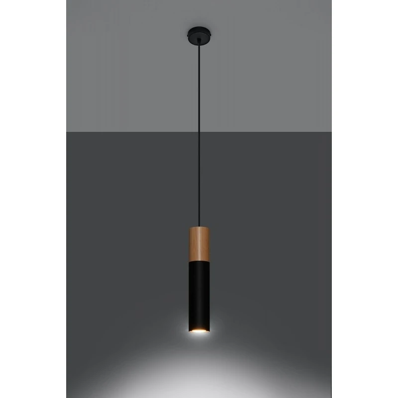 Lampa wisząca tuba czarno-drewniana GU10 PABLO SL.0632 SOLLUX