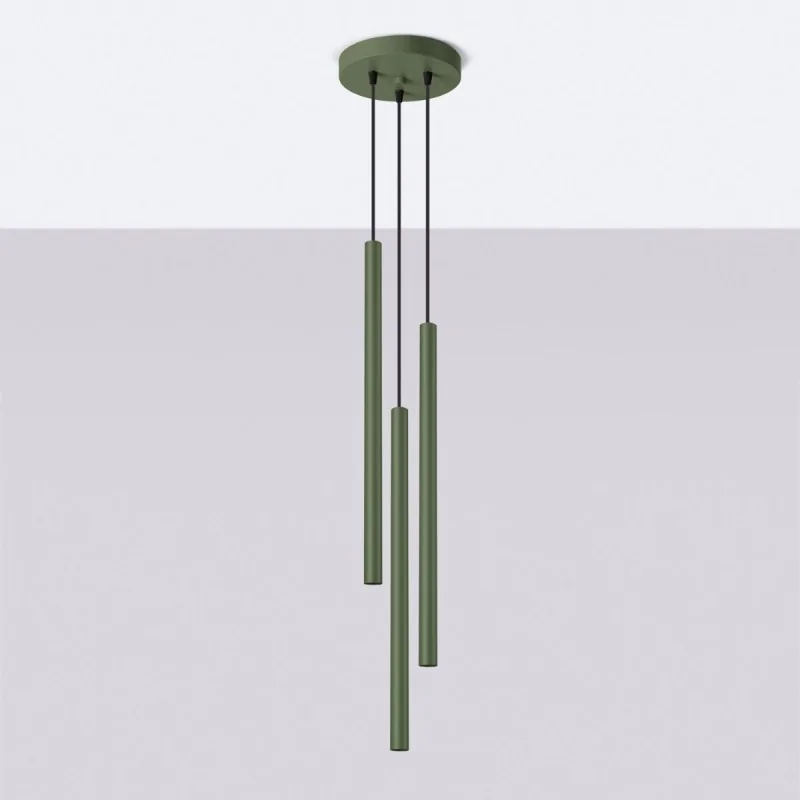 Lampa wisząca długie tuby PASTELO 3P zielona oliwka Sollux SL.1521
