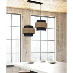 Lampa wisząca podwójna czarna + drewno 2xE27 TWIN 32-17888 CANDELLUX