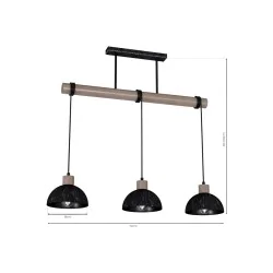 Lampa wisząca ERIK MLP7640 to propozycja od polskiego producenta EKO-LIGHT, inspirowana stylem retro. Metalowe klosze w kolorze czarnym mają delikatne białe przebłyski i są zawieszone na drewnianej belce. Funkcjonalnym rozwiązaniem jest możliwość regulowania wysokości, która może wynosić od 40 do 90cm - poprzez zawinięcie wokół belki, która mierzy 72cm długości. Oświetlenie posiada miejsce na 3 źródła światła o gwincie E27 do max mocy 60W. Wybierając dekoracyjne żarówki, podkreślimy wyjątkowy styl oprawy. W serii ERIK, dostępne są kinkiety i kilkupunktowe lampy wiszące.