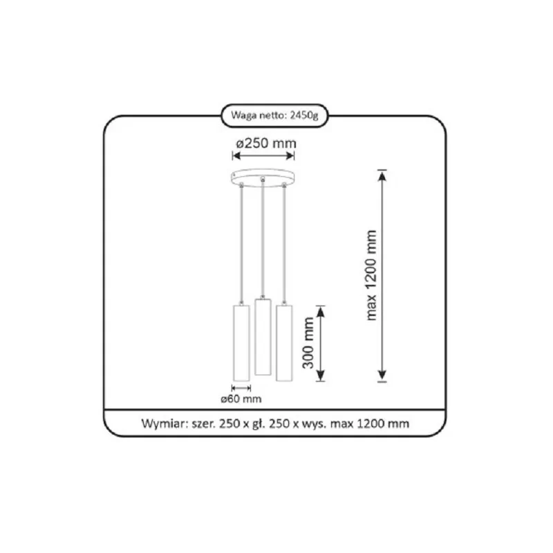 - Typ: Lampa sufitowa wisząca