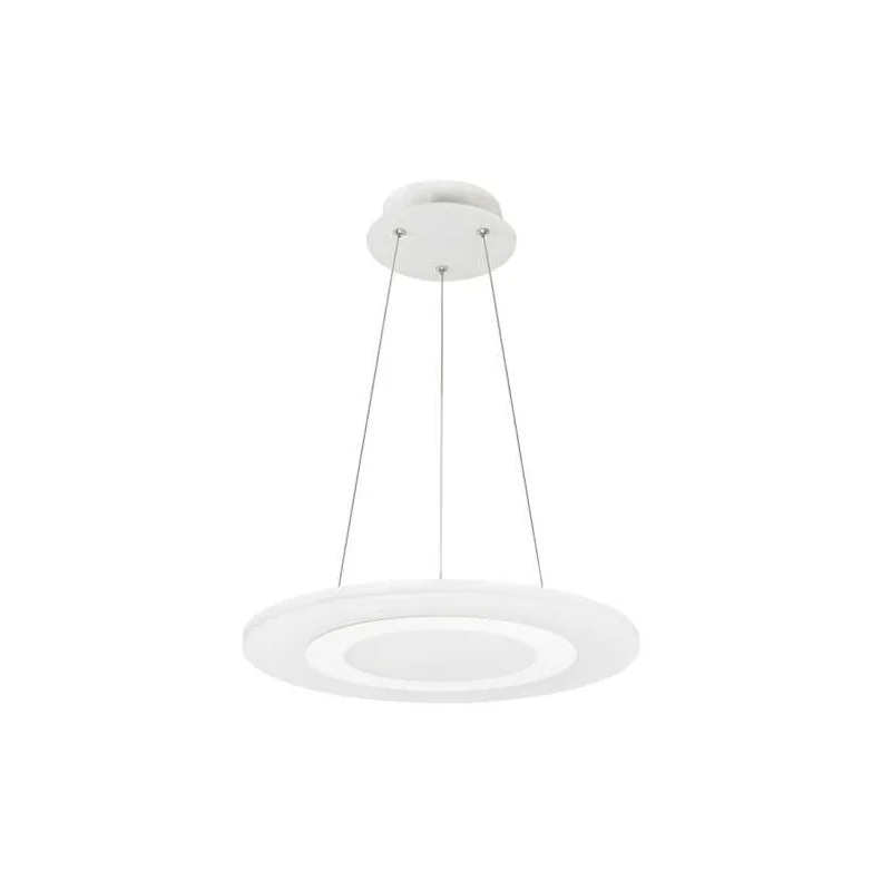 Sufitowa wisząca lampa LED Il Mio MIKELI marki POLUX działa z mocą 17W. Biały kolor pasuje do każdej aranżacji. Lampa sufitowa emituje naturalną barwą światła, która jest przyjazna dla oczu i ich nie męczy. Ze względu na stopień odporności IP20 lampa przeznaczona jest tylko do użytku wewnętrznego. Temperatura barwowa zintegrowanego źródła światla LED to 4000K, strumień świetlny jest równy 1100 lumenów, a jego przybliżony czas trwałości to około 20000h oraz 10000 cykli włączeń i wyłączeń. Produkt należy do klas energetycznych: A++, A+ oraz A.