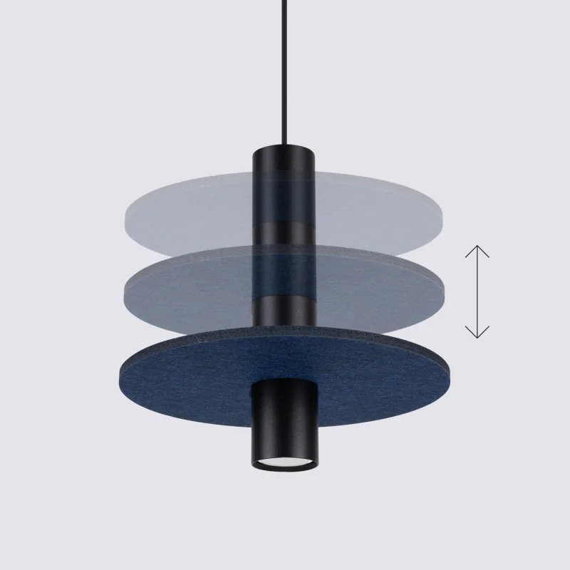 Lampa PELTA tworzy przytulną atmosferę, zapewniając komfortowe warunki do pracy, odpoczynku i relaksu. Dzięki regulacji wysokości filcowego krążka, możesz dostosować lampę do indywidualnych potrzeb przestrzeni.