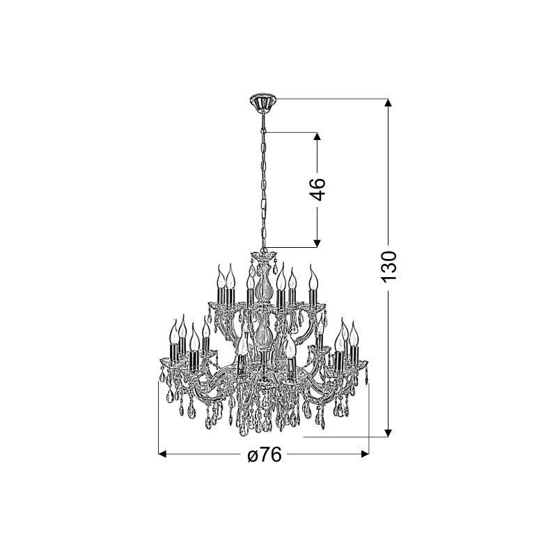 - materiał: podstawa stalowa, łańcuch, elementy ozdobne szklane, bez kloszy