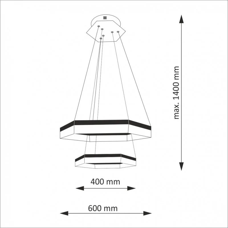 Sześciokątna lampa wisząca 306647 LUNA marki POLUX, posiad wbudowaną technologie LED. Supernowoczesna, a przy tym energooszczędna lampa LED-owa otuli wnętrze miękkim i jasnym światłem. Szalenie elegancki i oryginalny design ozdobi każde pomieszczenie i nada mu niesamowitego uroku. Oświetlenie wiszące świeci ciepłą barwą światła równą 3000K, natomiast cała oprawa pobiera moc 100W. Wymiary wynoszą: 60cm szerokości oraz 140cm wysokości. Lampa wykonana jest z najwyższą starannością, fascynuje swoją prostotą i niebanalnością, stworzy oszałamiający efekt w Twoim domu.