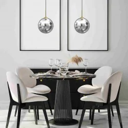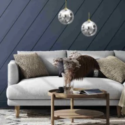 Podłużna lampa wisząca MLP8414 REFLEX polskiej marki EKO-LIGHT, w kształcie dymionej kuli idealnie dopasuje się do wnętrz w stylu glamour. Wyjątkowy klosz o nieco lustrzanym efekcie przyjemnie oraz maksymalnie rozproszy światło w pomieszczeniu, natomiast miedziany element dopełnia całą konstrukcji i nadaje nieco szyku. Bez problemu dopasuje się do każdego pomieszczenia, a to za sprawą regulowanej wysokości, która może wynosić od 90 do 50cm, natomiast średnica klosza wynosi 25cm. To szykowne oświetlenie wiszące posiada miejsce na żarówkę o trzonku E27 do maksymalnej mocy 60W (brak w zestawie). W serii REFLEX znajdziemy 6 modeli lamp.