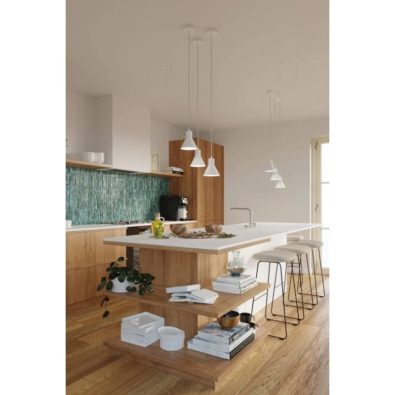 TALEJA to seria klasycznych lamp wiszących w wersji z 1 lub 3 kloszami w białej lub czarnej kolorystyce. Łagodnie rozchylone klosze zapewniają dużo światła, które równomiernie otula swoim blaskiem przestrzeń. Uniwersalny design pozwala z sukcesem wykorzystać lampę w dowolnym wnętrzu. Dzięki prostemu kształtowi pozostawia ona przestrzeń dla innych elementów wystroju, chociaż w wersji z 3 kloszami na różnych wysokościach potrafi przyciągnąć zaciekawione spojrzenia. Model przeznaczony na żarówki E27- brak w zestawie. Model SL.0983 na 1 źródło światła w białej stalowej obudowie pochodzi z polskiej produkcji z 5 letnią gwarancją.