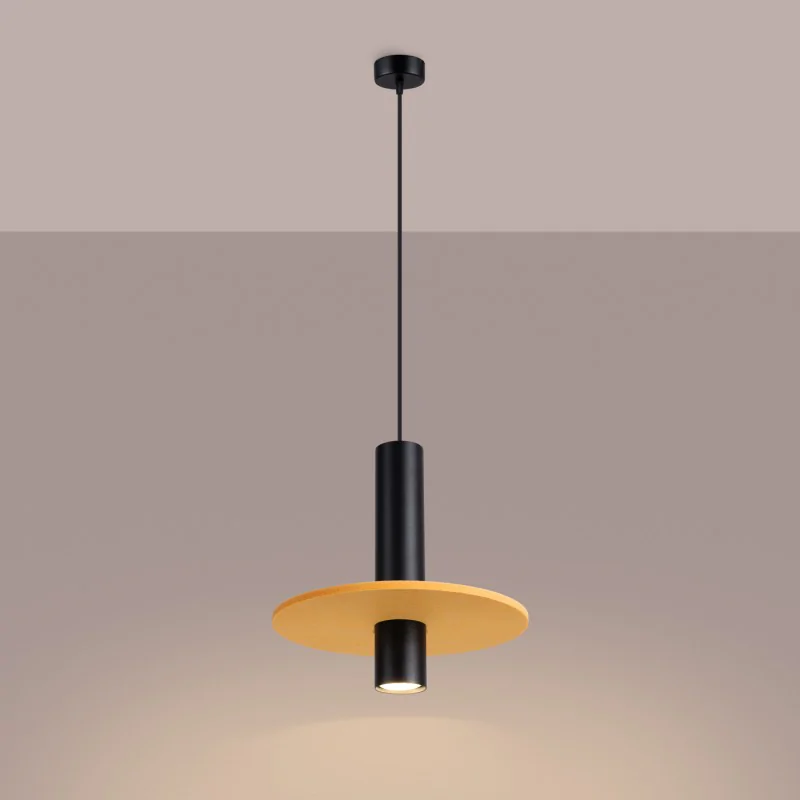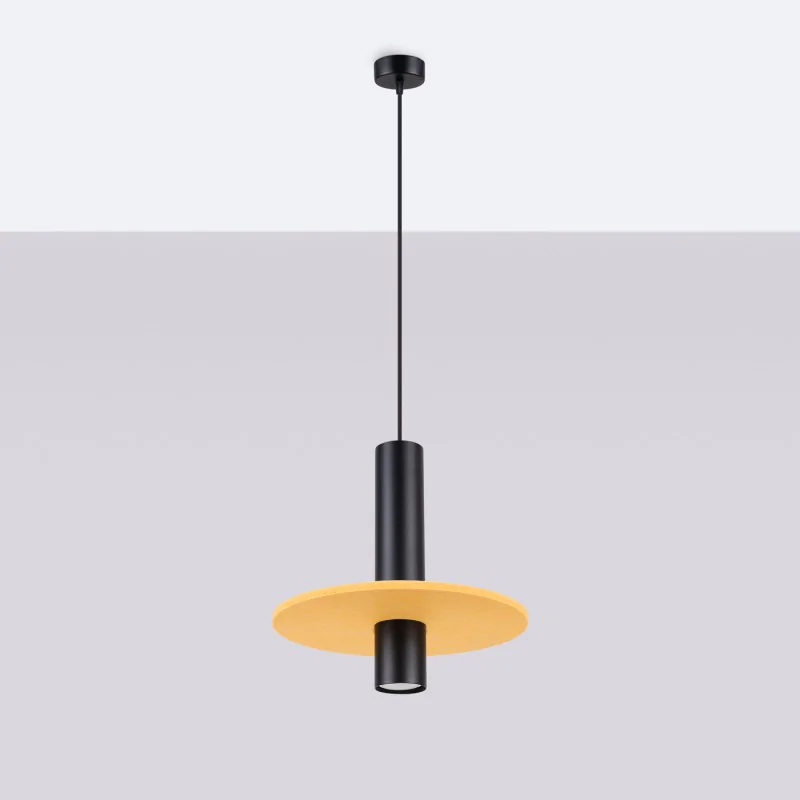 Lampa wisząca tuba czarna z żółtym kołem PELTA 1 SL.1883 Sollux