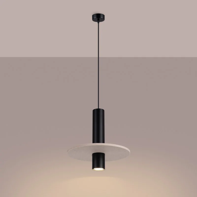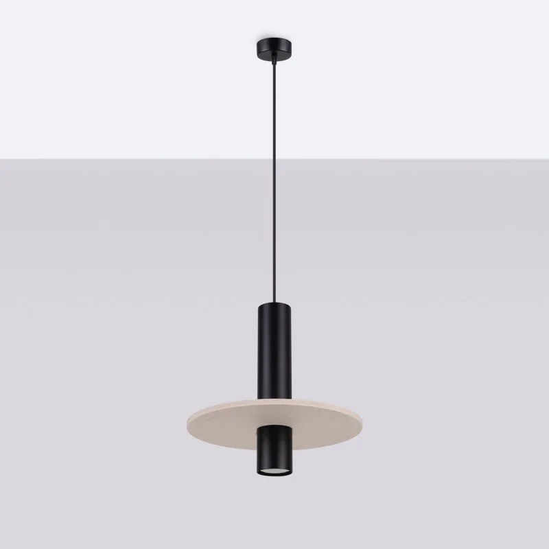 Lampa wisząca tuba sufitowa z filcowym kołem PELTA 1 czarna/beżowa SL.1882 Sollux