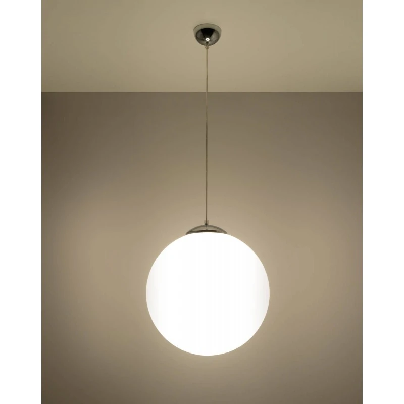 Nowoczesne lampy kule UGO prezentują minimalistyczne podejście do designu. Ich proste wzornictwo sprawia, że wpasują się w większość aranżacji wnętrzarskich, bez względu na ich styl przewodni. Klosze wykonane są z grubego, mlecznego szkła przez co wydobywające się z nich światło daje wrażenie delikatnie mglistej poświaty. Lampy UGO mogą być stosowane w roli oświetlenia głównego, bądź fakultatywnie - zależy to od indywidualnych potrzeb i preferencji. Chromowane wstawki podkreślają elegancki charakter opraw sufitowych. Do modelu pasują żarówki E27- brak w zestawie. W rodzinie UGO dostępne są warianty o różnej średnicy klosza ze złotą lub chromową wstawką . Model SL.0265 posiada chromowaną wstawkę i klosz o średnicy 40cm.