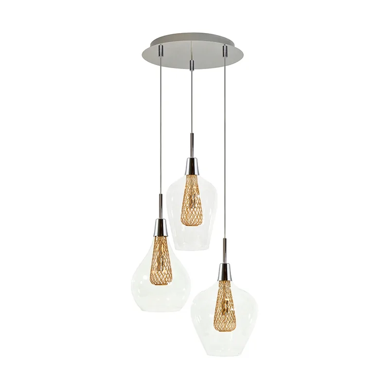 Lampa sufitowa potrójny zwis ze szklanym kloszem