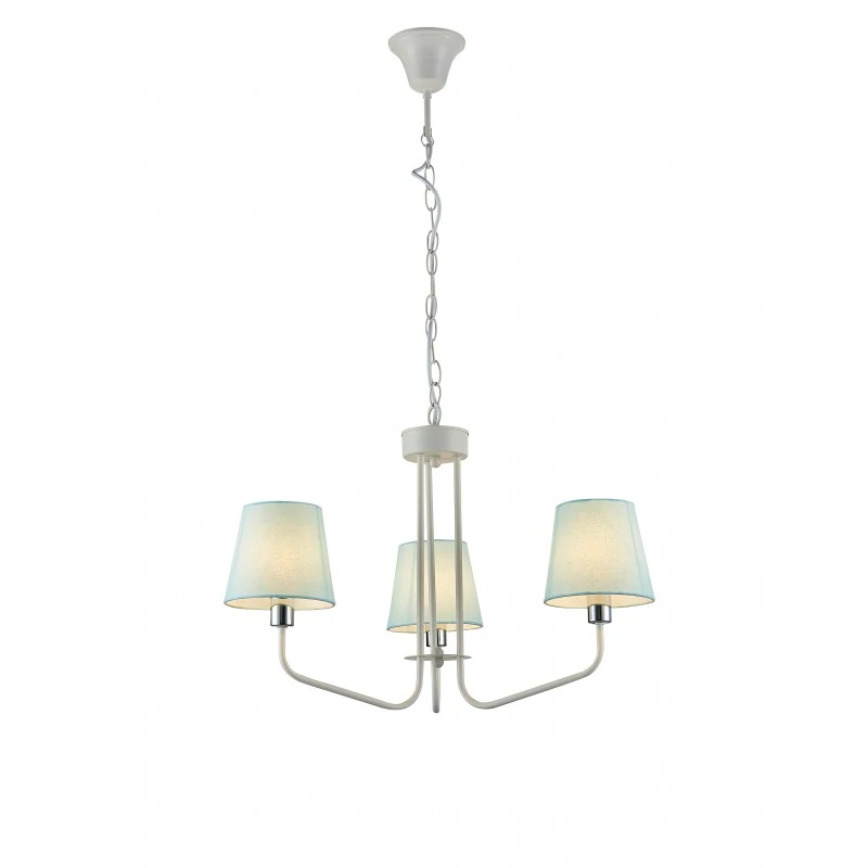 Lampa wisząca YORK 50203096 nowej marki LEDEA w klasycznej konstrukcji dopasuje się do wnętrz gdzie panuje minimalizm i królują stonowane kolory. Wykonana jest z metalowej białej konstrukcji oraz delikatnym niebieskich kloszów z tkaniny. Trzy ramionka zakończone są oprawkami na żarówkę o gwincie E14 do maksymalnej mocy 60W - brak w zestawie. Oświetlenie posiada wymiary takie jak: szerokość/długość - 53cm oraz wysokość: 44cm. Polecamy zapoznać się z cała serią YORK. Produkt objęty jest gwarancją producenta.