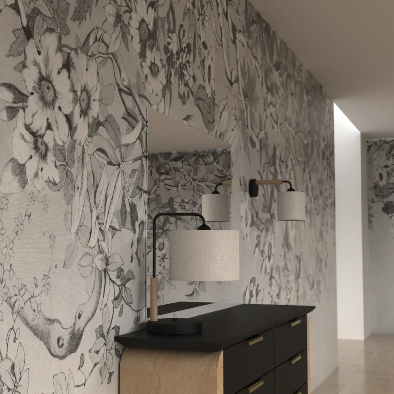 - Materiał: Metal, drewno, len