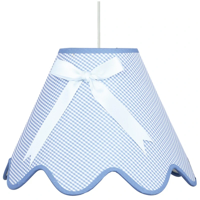 Lampa wisząca LOLA 31-04666 posiada abażur w niebiesko-białą kratę oraz efektowną, uroczą kokardę. Lampa sufitowa marki Candellux to nietuzinkowy produkt, finezja i ciepły wyraz został dedykowany dla miłośników subtelnych i pastelowych wnętrz sypialnianych i pokoi dziecinnych. Abażur został wykonany z płótna a linka z plastiku. Oprawa przeznaczona jest na jedną żarówkę z gwintem E27 o maksymalnej mocy 60W. Dostępna jest również w innych kolorach. Produkt objęty gwarancja producenta.