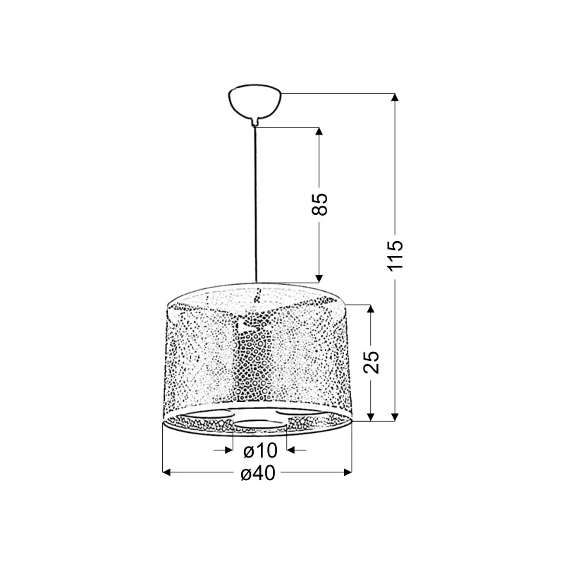 - Materiał: zawiesie stalowe z linką, abażur metalowy z wyciętym wzorkiem
