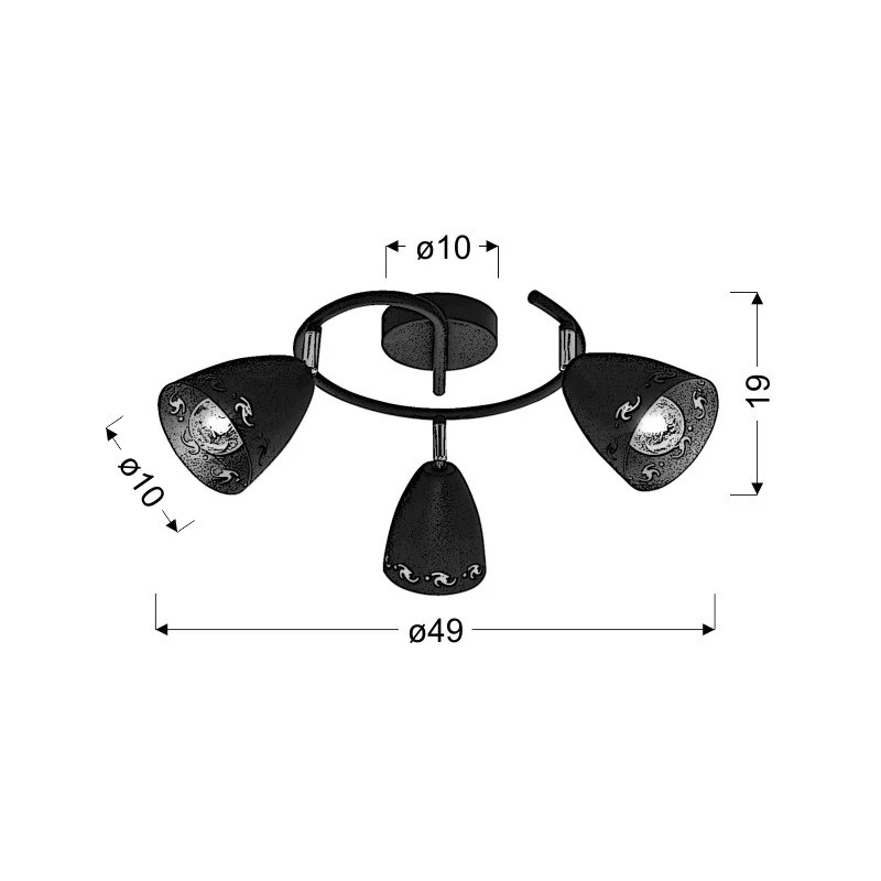 - Typ: lampa sufitowa potrójna, spot oświetleniowy potrójny