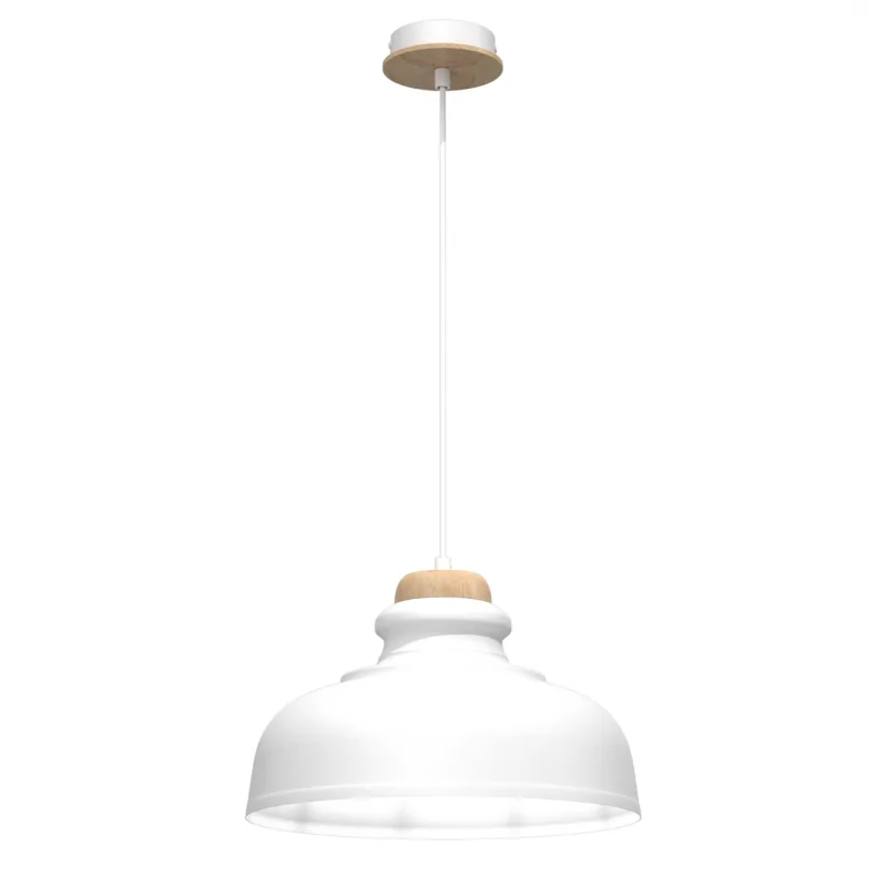 Lampa wisząca ASMUND MLP8292 polskiego producent EKO-LIGHT, dzięki minimalistycznemu połączeniu kolorystycznemu sprawdzi się w każdej przestrzeni, dlatego jest niezwykle klasyczne i stonowane. Oświetlenie wykonana jest z metalu oraz drewnianego elementu w formie ozdobnej podsufitki i nadkloszówki. Regulowana wysokość, poprzez ucięcie przewodu może wynosić od 50 do 90 centymetrów, natomiast średnica klosza to 30cm. Należy zamontować tradycyjną żarówkę o gwincie E27 do maksymalnie mocy 60W. Lampa dostępna jest w większym lub mniejszym rozmiarze oraz w kolorze czarnym i o kilkuaktowym źródle światła.