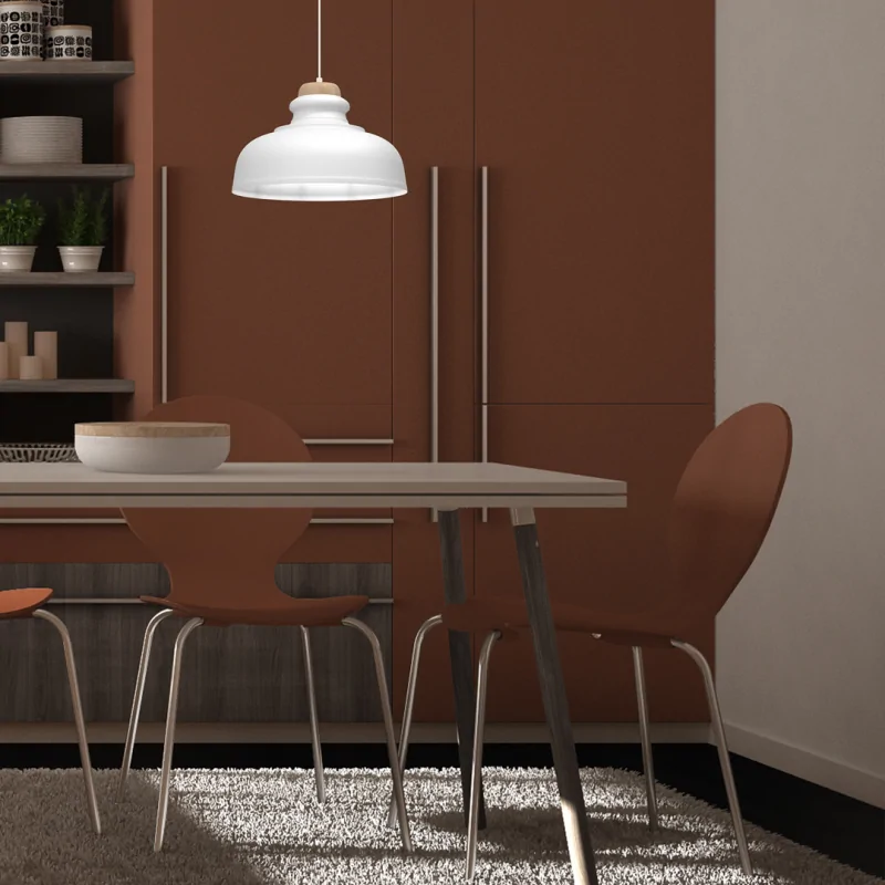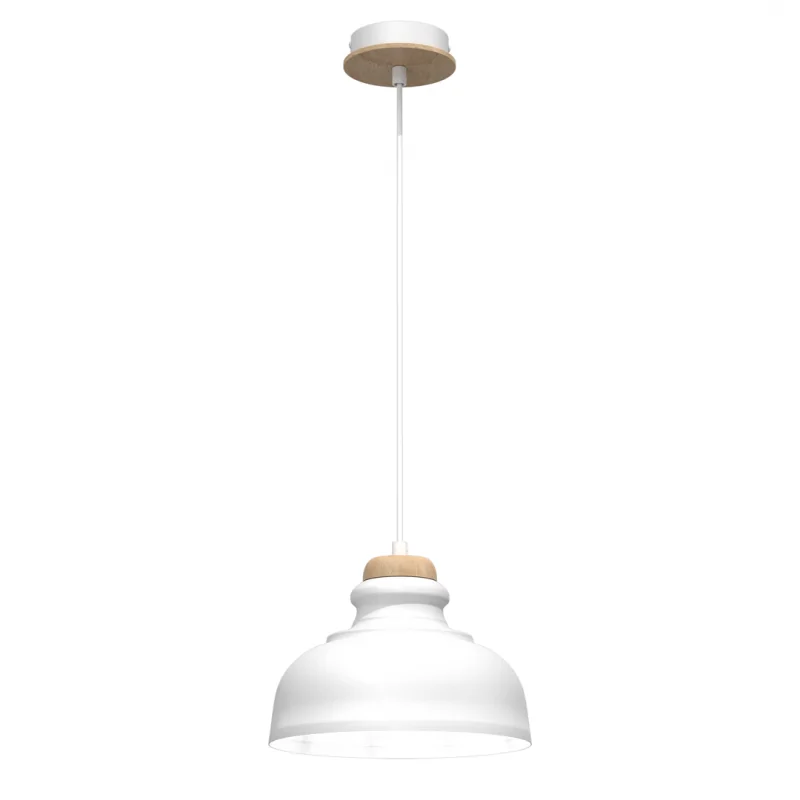 Lampa wisząca biała z drewnianymi elementami