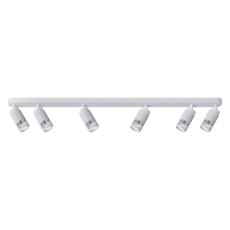 Lampa sufitowa z kolekcji VERTICAL producenta EKO-LIGHT, to funkcjonalne oświetlenie, które dopasuje się zarówno do dużych, loftowych wnętrz, jak i tych mniejszych o ograniczonej przestrzeni. Listwa mierzy aż 119,5cm szerokości, dzięki czemu oświetli duże pomieszczenia, umożliwiają to również ruchome klosze, które możemy ustawić w dowolnym kierunku. Całość została wykonana z aluminium w klasycznym biały kolorze. Prezentowane oświetlenie sufitowe jest połączeniem funkcjonalności z ponadczasowością. Lampa przystosowana jest do 6 żarówek o gwincie GU10 do max mocy LED 8W - źródło światła nie jest dołączone do zestawu. W kolekcji VERTICAL znajdziemy aż 26 lamp w białym i czarnym kolorze.