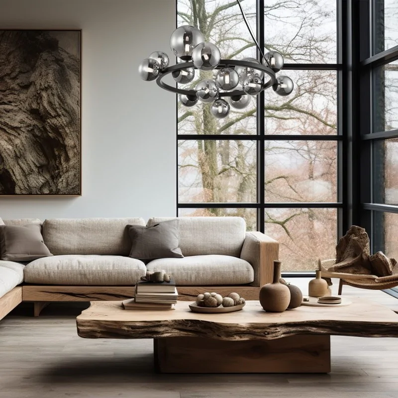 Żyrandol czarno-drewniany słupeł Lampa 4 ramiona pająk EMBER 5 Sollux SL.1478