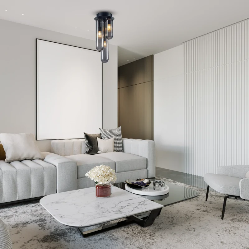 Nowoczesna lampa sufitowa z kolekcji PAX marki EKO-LIGHT, w czarny kolorze symbolizuje szyk i minimalistyczną elegancję. Metalowe elementy w czarnym wykończeniu nadają oprawie charakteru i wyrazistości. To oświetlenie stanowi doskonały kontrast dla jasnych ścian i mebli, tworząc harmonijną kompozycję 3 szklane klosze o lekkim złotym zabarwieniu, mają różne rozmiary, dzięki czemu tworzą niepowtarzalną konstrukcję oraz przyjemnie rozpraszają światło we wnętrzu. Oświetlenie wiszące przystosowane jest na 3 żarówki o trzonku G9 do max mocy 9W LED (brak w zestawie). Lampa mierzy 35,5cm wysokości, a średnica podstawy wynosi 15cm. W kolekcji PAX dostępne są 4 modele lamp w kolorze złotym i czarnym.
