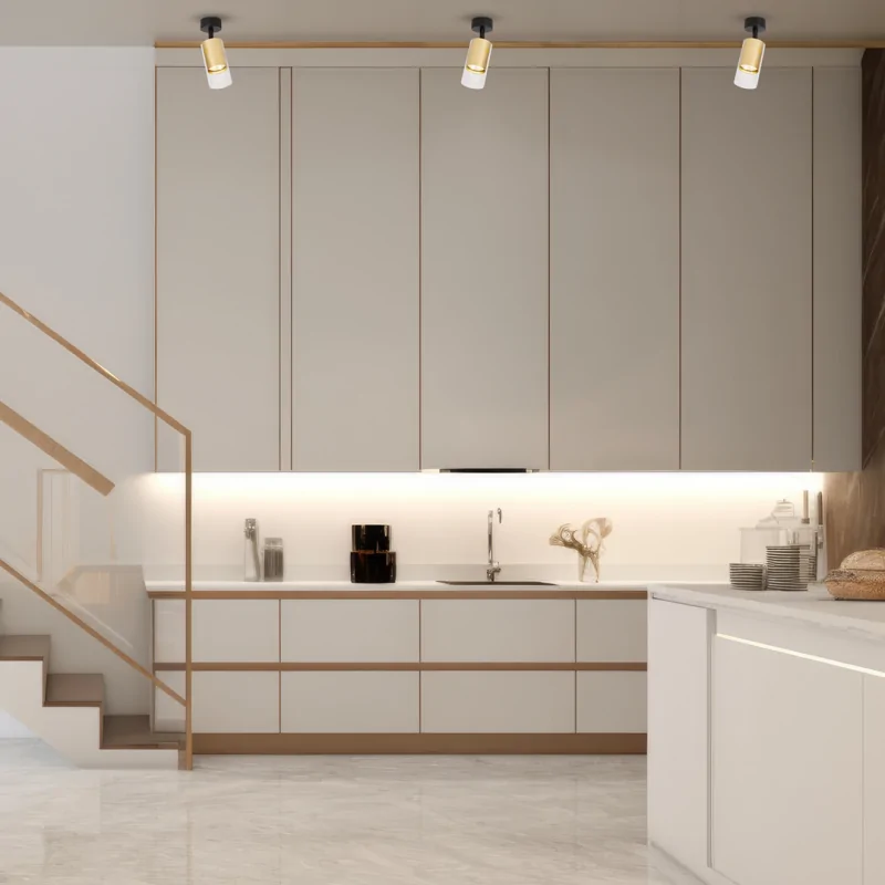 Lampa sufitowa z kolekcji RICKY polskiej marki EKO-LIGHT, posiada złote wykończenie, które dodaje elegancji i podkreśla nowoczesny design, sprawiając, że staje się centralnym punktem każdej przestrzeni. Jedno źródło światła gwarantuje precyzyjne oświetlenie, idealne do stworzenia nastroju i wyeksponowania wybranych obszarów w pomieszczeniu. Umożliwia to także ruchomy klosz, dzięki czemu możemy w odpowiedni punkt skierować światło. Oświetlenie sufitowe przystosowane jest na żarówkę o gwincie GU10 - brak w zestawie. Tuba mierzy 14,3cm wysokości i 6cm szerokości. Wykonana jest z aluminium z dodatkiem tworzywa sztucznego. Polecamy zapoznać się z całą serią RICKY w której znajdziemy 7 modeli różnych lamp.