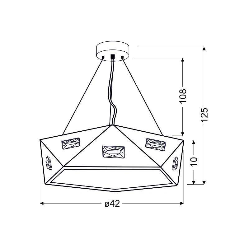 - Materiał: zawiesie metalowe na linkach stalowych, abażur metalowy z kryształkami