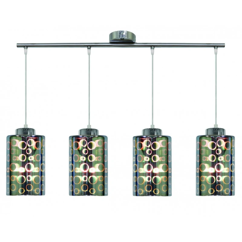 Lampa wisząca NOCTURNO 34-57723, marki Candellux, to oryginalne oświetlenie dedykowana do nowoczesnych wnętrz, to propozycja, która z pewnością przyciągnie wzrok i nada awangardy w pomieszczeniu. Wykonana została ze szklanych kloszy, które są powlekane próżniowo warstwą dekoracyjną oraz zabezpieczone powłoką szkliwioną. Chromowe elementy i wzory na abażurach sprawiają, że po włączeniu lampa rozbłyśnie niesamowitym efektem 3D. Dodatkowo została zawieszona na metalowych linkach, które umożliwiają regulację wysokość. Oświetlenie wiszące przystosowane zostało na cztery żarówki o gwincie E27 do maksymalnej mocy 40W - brak w zestawie. Polecamy zapoznać się z całą, rozbudowaną serią NOCTURNO. Produkt objęty jest gwarancją producenta.