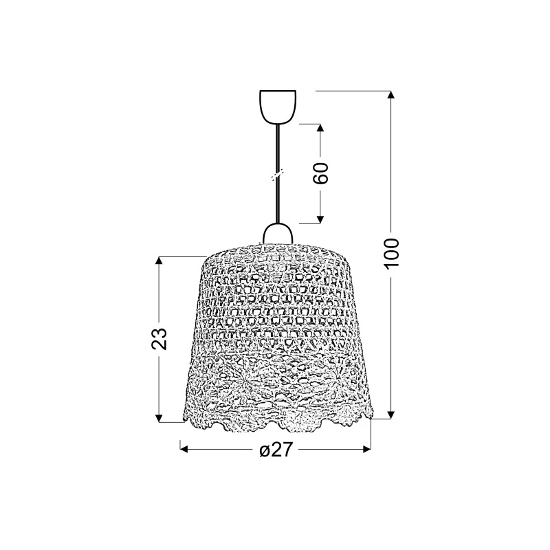 - Materiał: abażur ażurowy z prasowanego sznurka, zawiesie linka plastikowa