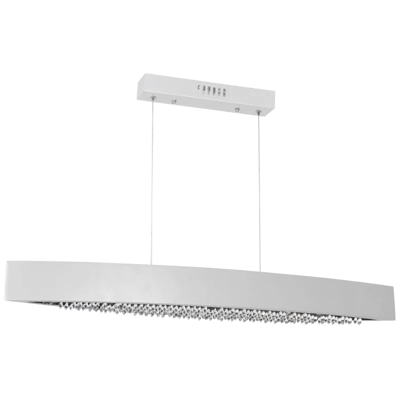 Lampa wisząca ML015 BOCCA marki EKO-LIGHT, to opływowa oprawa w kształcie łezki ułożonej poziomo. Została umieszczona na dwóch regulowanych zawiesiach o długości od 50cm do 100cm. Z drugiej strony zawiesia zamontowano przy podłużnej podsufitce o długości 31cm, szerokości 6cm i wysokości 4cm. W dolnej części oprawy lampę dekorują urocze kryształki, które dodają całości stylu. Żyrandol ma jeden moduł LED o mocy równej 18W, co odpowiada mocy 93W w przypadku tradycyjnej żarówki. Strumień świetlny wymiennego światła LED ma wartość 1660lm. Punkt świetlny zapewnia przyjemne dla oka neutralne światło, zbliżone do światła dziennego. Temperatura barwowa sięga tu 4000K. Oświetlenie wiszące BOCCA zostało stworzone z myślą o eleganckich salonach, których urok i klasę podkreślą widoczne kryształki i srebrna powłoka obudowy. Produkty firmy EKO-LIGHT posiadają 24-miesięczną gwarancję producenta.