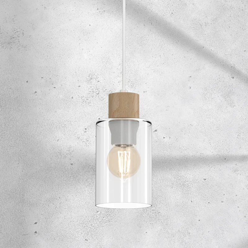 Pojedyncze oświetlenie wiszące o transparentnym kloszu