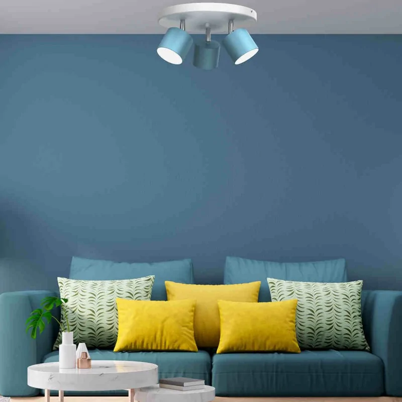 Oświetlenie sufitowe MLP7607 z kolekcji DIXIE, zaprojektowane i wykonane zostało przez polskiego producenta EKO-LIGHT. Biało-niebieska kolorystyka z pewnością wniesie do pomieszczenia delikatny klimat, idealnie będzie pasowało do pokoju dziecięcego, jak i każdego innego pomieszczenia domowego. Ruchome klosze możemy ustawić w dowolnym kierunku, dzięki czemu oświetli znacznie większą przestrzeń. Lampa sufitowa mierzy 14cm wysokość, natomiast średnica wynosi 29cm. W oświetleniu należy zamontować 3 żarówki LED o gwincie Gx53 (brak w zestawie). W kolekcji DIXIE, znajdziemy aż 40 modeli lamp w 4 różnych kolorach.