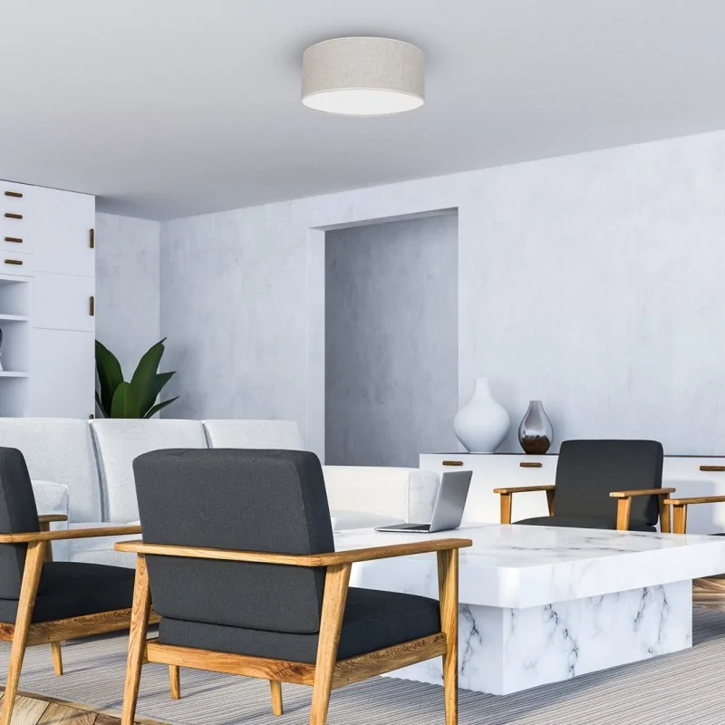 Lampa sufitowa MLP7498 z kolekcji LINO marki EKO-LIGHT, wykonana została z lnianego klosza, który przyjemnie przepuszcza strumień światła. Dla potrzymania całej konstrukcji, została usztywniona metalowymi elementami. Średnica klosz to 40cm, natomiast wysokość wynosi 13cm. Oświetlenie dzięki prostemu kształtowi ale efektownemu abażurowi, dopasuje się zarówno do klasycznych jak i nowoczesnych przestrzeni. W lampie należy zamontować żarówki o gwincie E27 do maksymalnej mocy 60W (brak w zestawie). Seri LINO składa się aż z 10 wyjątkowych modeli lamp, które doskonale wzajemnie się uzupełniają.
