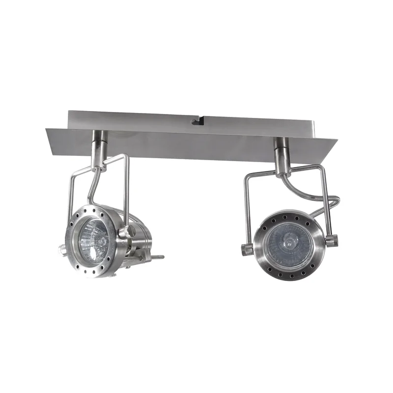 Oprawa ścienno-sufitowa w stalowej obudowie SONDA EL-2J firmy KANLUX jest w kolorze matowego chromu. Możliwość regulacji kierunku padania światła, nietypowy kształt oraz solidna konstrukcja to atuty tego oświetlenia. Ze względu na stopień odporności IP20 oprawa przeznaczona jest tylko do użytku wewnętrznego i sprzedawana jest bez źródła światła w zestawie. Lampa o nietypowym kształcie idealnie spisze się w nowoczesnych wnętrzach. Dedykowanym źródłem światła są dwie żarówki o trzonku GU10, których maksymalna moc może wynosić 50W (2x50W).