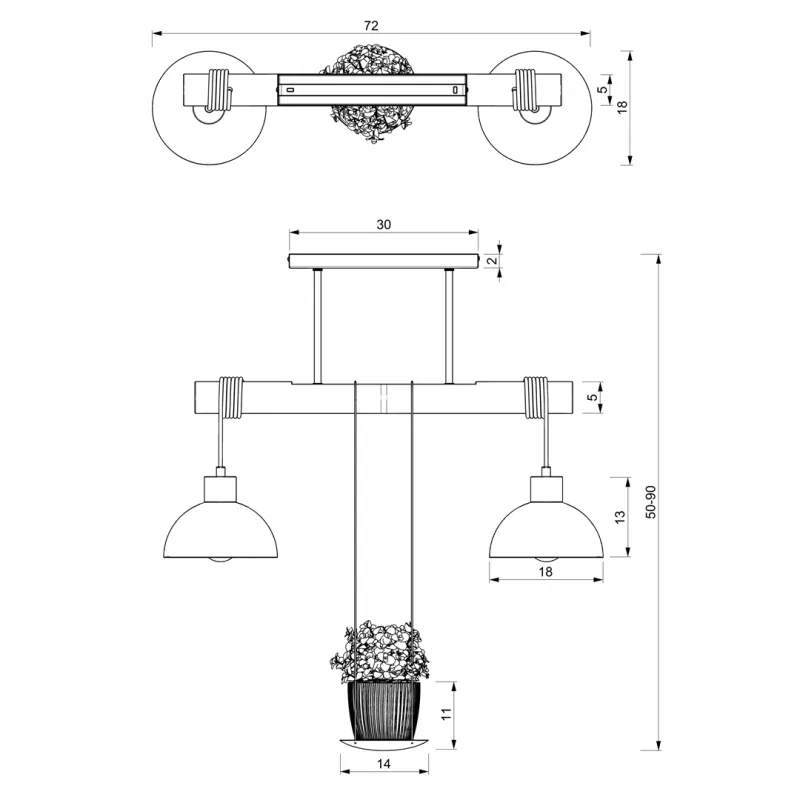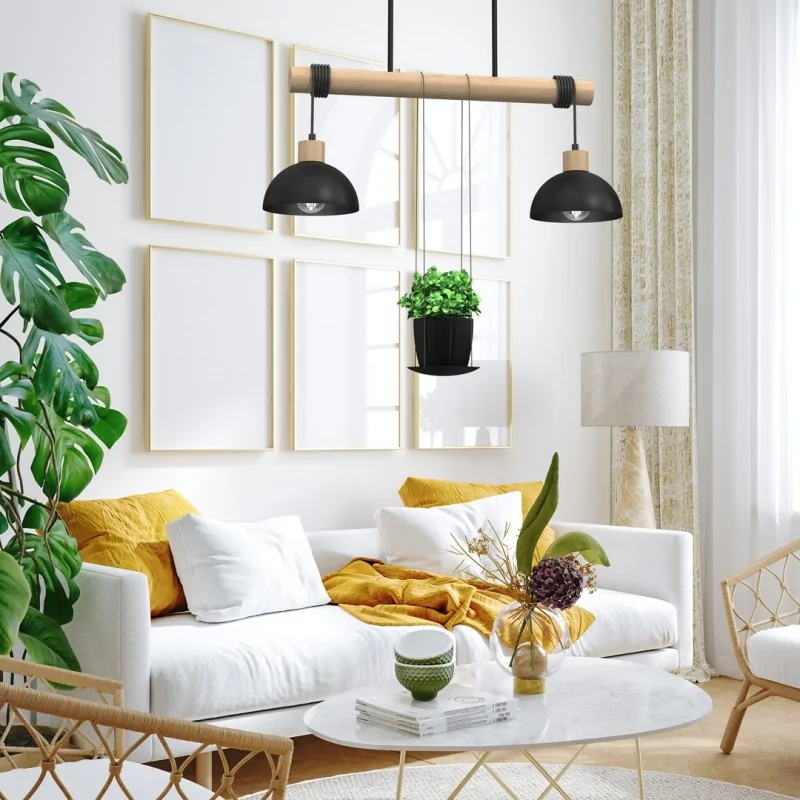 Wisząca lampa PIANTA MLP7998 to propozycja producenta marki EKO-LIGHT, skierowana przede wszystkich do osób, które lubią otaczać się roślinami. To połączenie oświetlenia i dekoracji w jednym, dzięki temu rozwiązaniu do pomieszczenia wprowadzona jest świeżość i naturalność. Pomiędzy dwoma prostymi kloszami znajduje się czarna doniczka. Regulowana wysokość od 35cm do 90cm, pozwala na odpowiednie dopasowanie do otoczenia, natomiast szerokość drewnianej belki to 72cm. Oświetlenie posiada miejsce na 2 źródła światła o gwincie E27 do max mocy 60W. Możemy wybrać dekoracyjne żarówki, dzięki temu stworzymy nietuzinkową i niepowtarzalną konstrukcję. Lampa dostępna jest także w formie 3-punktowej oraz ze złotymi elementami.