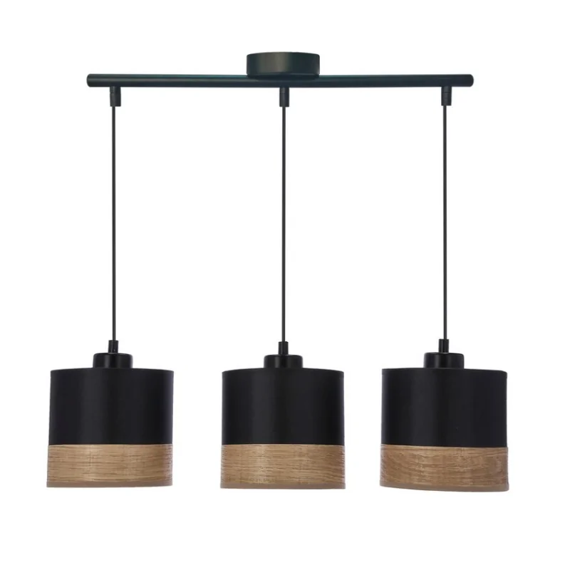 Potrójna lampa wisząca 33-17611 z kolekcji PORTO producenta CANDELLUX, dopasuje się niemal do każdego wnętrza. Umożliwia to klasyczny czarny kolor oraz regulowana wysokość - poprzez skrócenie przewodów. Oświetlenie wiszące posiada miejsce na 3 tradycyjne żarówki o gwincie E27 do max mocy 60W. Abażury wykonane z tkaniny posiadają drewniane paski, które nadają lekkości całej konstrukcji. Listwa mierzy 57cm szerokości, natomiast wysokość wynosi 115cm. Polecamy zapoznać się z całą serią PORTO.