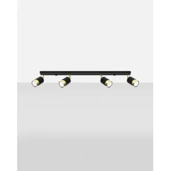 Lampa sufitowa SL.1072 NERO producenta SOLLUX, to uniwersalna propozycja oświetleniowa, która dopasuje się niemal do każdej przestrzeni. Listwa mierząca 81cm długości oraz ruchome klosze, które możemy ustawić w dowolny kierunku, sprawiają, że lampa poradzi sobie w ciemnych, dużych pomieszczaniach. Czarny kolor ze złotymi dodatkami, tworzą minimalistyczną lecz ciekawą kompozycję. W oświetleniu należy zamontować 4 żarówki o gwincie GU10 do max mocy 40W lub 12W w przypadku źródła światła LED. Plafon został wykonany w całości ze stali, dzięki czemu mamy pewność, że posłuży nam przez długie lata. Seria SOLLUX, oferuje lampy w różnych kompozycjach oraz kolorach.