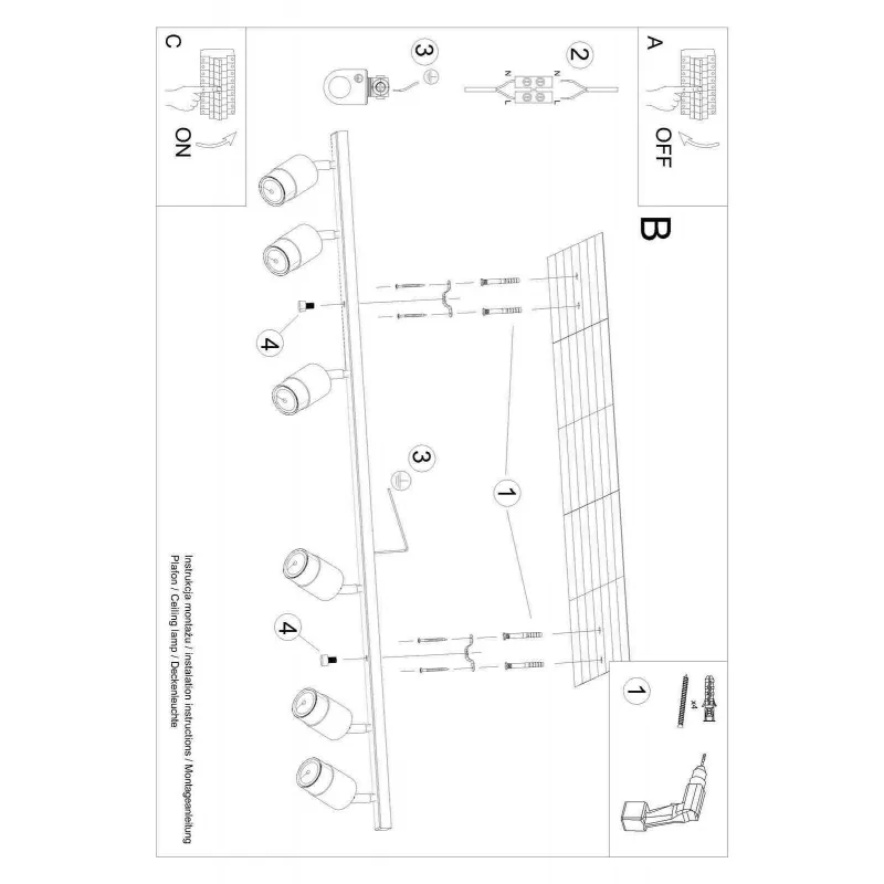 Lampa sufitowa - listwa 117cm ruchome klosze 6x40W GU10 NERO SL.1068 SOLLUX