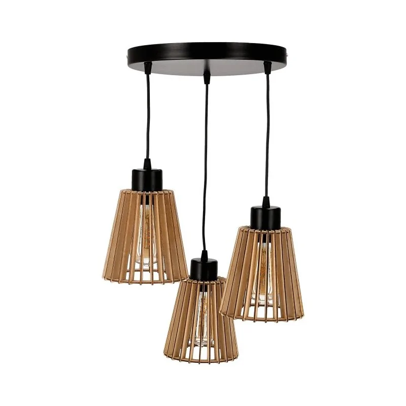 Potrójna lama sufitowa okrągła drewniana E27 3x60W DELOS AD-LD-6410BE27D ORNO