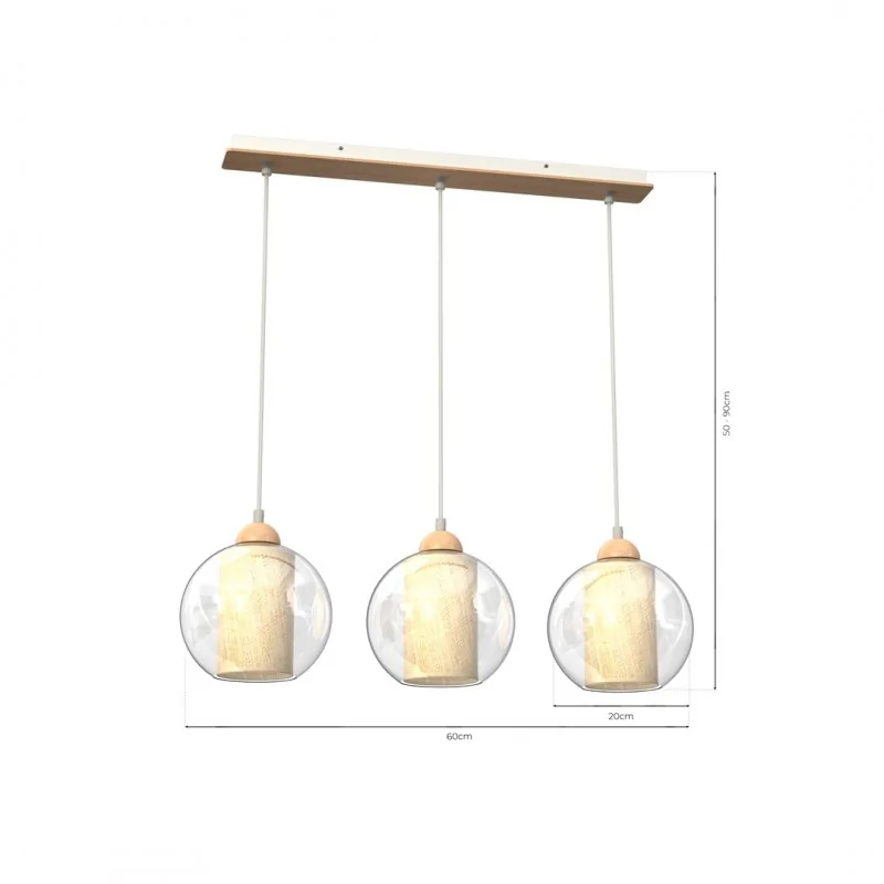 Potrójna lampa wisząca szkło + drewno 3xE27 TELA MLP7957 EKO-LIGHT