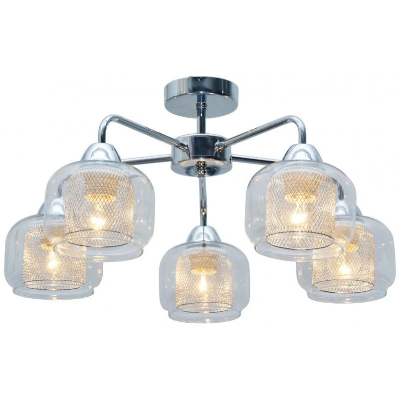 Lampa sufitowa RAY 35-67104 to nowoczesne oświetlenie szczególnie dedykowane miłośnikom nowoczesnych i nietuzinkowych wnętrz. Podwójne klosze pięknie rozpraszają światło w pomieszczeniach dodając przy tym wyjątkowego efektu. Lampa wisząca designerskiej marki Candellux została wykonana z metalu oraz ze szkła, które zdobi zewnętrzne klosze. Pięć źródłem światła przystosowane jest na żarówkę o trzonku E14 i mocy max 40W. Do kompletu polecamy również kinkiet oraz lampę wiszącą 5-punktową oraz lampę sufitową 3-punktową. Produkt objęty jest gwarancją producenta.