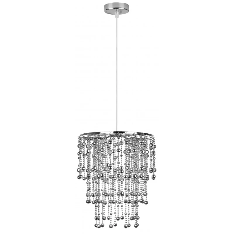 Nowoczesna lampa wisząca RONI 31-84323 marki Candellux, w kolorze chromowym, ozdobiona została dużą ilością koralików. Wyposażona jest w oprawkę E27 o maksymalnej mocy 60W. Źródło światła nie jest dołączone do zestawu, dlatego możemy wybrać dekoracyjną żarówkę, która z pewnością urozmaici całą konstrukcję. Oświetlenie wykonane jest z metalowej podstawy oraz plastikowych koralików. Wymiary to: 110cm wysokości i 22cm szerokości. Lampa posiada możliwość regulacji wysokości, poprzez skrócenie przewodów. Produkt objęty gwarancją producenta.