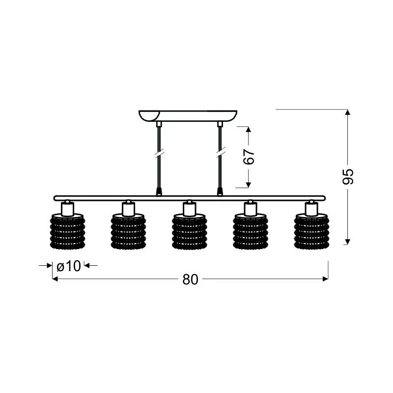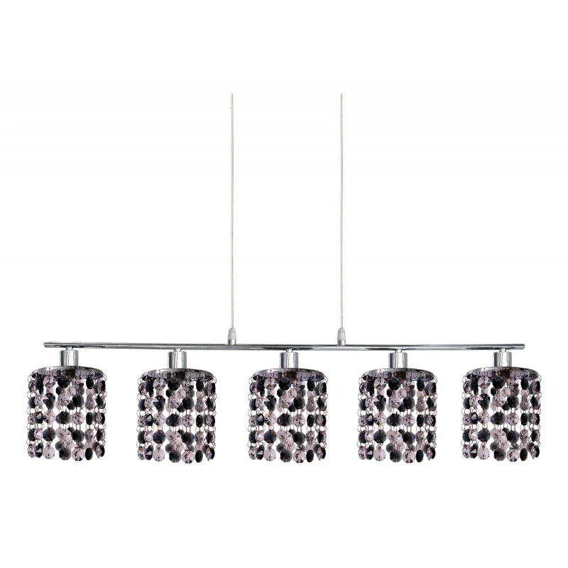 Elegancka lampa wisząca ROYAL 35-35724 z pewnością doda szyku i klasy w pomieszczeniu a to za sprawą kloszy, które są wykonana z transparentno-czarnych kryształków. Całość zawieszona jest ma metalowych linkach, którymi możemy regulować wysokość, poprzez samodzielne skrócenie przewodów. Oświetlenie sufitowe marki Candellux to ponadczasowy dodatek funkcyjny, który pięknie rozprasza światło w pomieszczeniu. Przystosowana jest na pięć żarówek o gwincie G9 i do maksymalnej mocy 40W. Jej wymiary wynoszą: wysokość - 95cm oraz szerokość - 80cm. Do kompletu możemy dobrać: kinkiety, plafony lub lampy wiszące kilkupunktowe w dwóch kolorach. Produkt objęty jest gwarancją producenta.