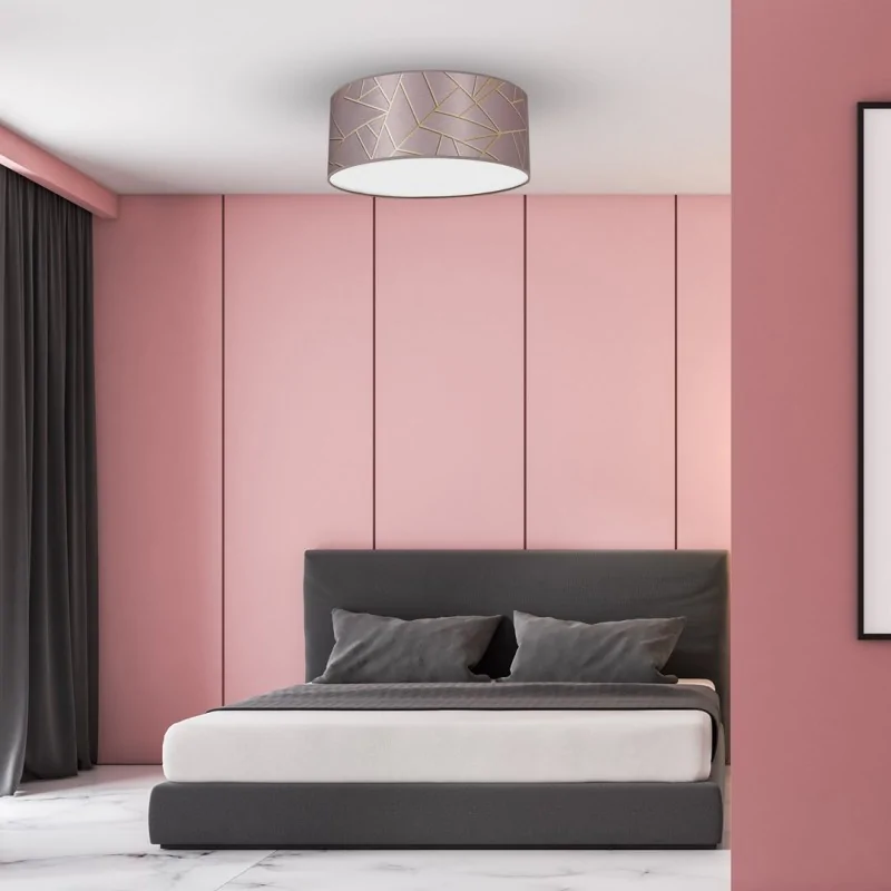 Szykowne oświetlenie sufitowe ZIGGY MLP7585 Polskiej marki EKO-LIGHT, wyróżnia się nietuzinkowym połączeniem kolorystycznym. Tkaninowy klosz w różowym kolorze, ozdobiony jest złotymi liniami, które nadają nowoczesnego klimatu. Do lampy należy dobrać 2 żarówki o gwincie E27 do maksymalnej mocy 60W - polecamy wybrać energooszczędne żarówki LED. Średnica oprawy wynosi 40cm, a jej wysokość to 13cm. Konstrukcja usztywniona jest metalowymi elementami, dzięki czemu całość jest stabilna i zapewnia długie użytkowanie. W tej serii najdziemy aż 30 różnych lamp w kolorze zielonym, białym i różowym, dlatego mamy duże możliwości tworzenia różnych aranżacji w pomieszczeniu.