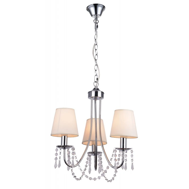 Trzypunktowa lampa sufitowa chromowo - beżowa z wiszącymi kryształkami