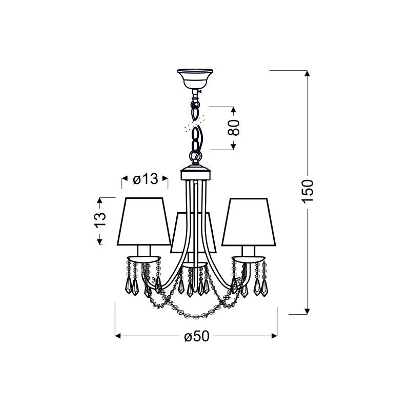 Klasyczne oświetlenie sufitowe RUTI 33-58713, przyozdobione jest zwisającymi kryształkami, dzięki czemu staje się bardziej nowoczesne i awangardowe. Chromowa, lustrzana podstawa wykonana jest ze stali, a abażury z tkaniny usztywnione od środka PCV, całość dopełniają transparentne kryształki. Zamontowana została na łańcuchach, które umożliwiają nam regulację wysokości. Jej wymiary: wysokość - 150cm oraz szerokość - 50cm idealnie nadadzą się do przestronnych, otwartych pomieszczeń. Lampa wisząca marki Candellux posiada miejsce na trzy źródła światła o gwincie E14 do max mocy 40W (brak w zestawie). W linii RUTI znajdziemy również kinkiety. Produkt objęty jest gwarancją producenta.