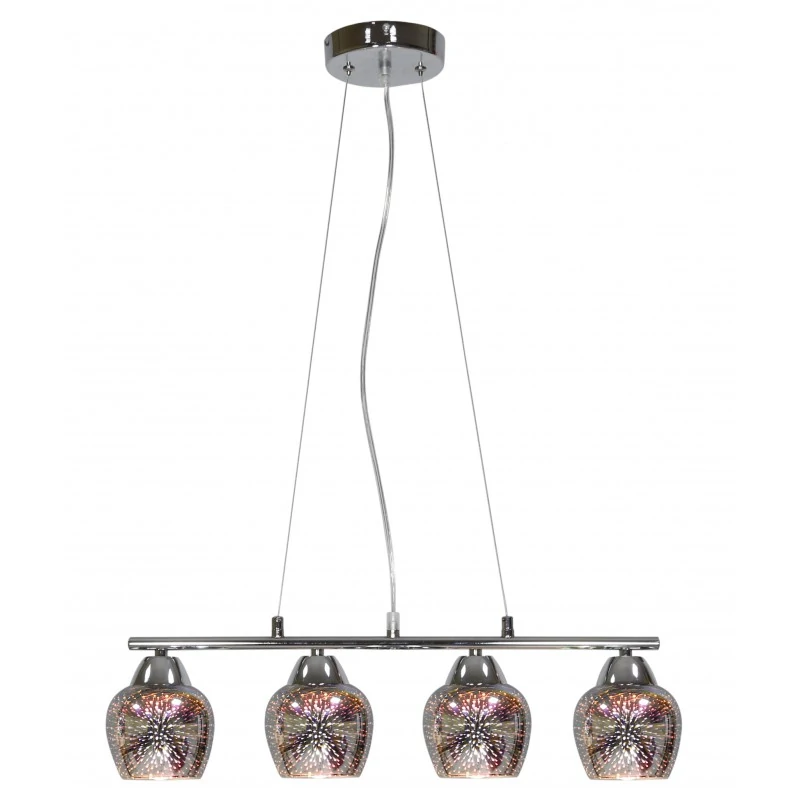 Oryginalne oświetlenie sufitowe SIRIUS 34-59628 to astronomiczny efekt na abażurach w przyziemnej cenie. Klosz powlekany próżniowo warstwą dekoracyjną, zabezpieczoną powłoką szkliwioną, tajemniczość spotęgowana jest chromowanymi elementami metalowymi, w których odbija się oszałamiający klosz z efektem 3D po włączeniu. Możemy regulować wysokość zwisu poprzez skrócenie przewodów. Lampa sufitowa marki Candellux posiada miejsce na cztery żarówki o tradycyjnym gwincie E27 do maksymalnej mocy 60W (brak w zestawie). W serii SIRIUS dostępna jest również potrójna lampa wisząca oraz plafon. Produkt objęty gwarancją producenta.