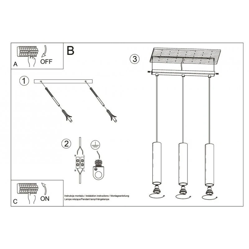 SL.1201 Zwisające tuby lampa potrójna złota do kuchni 3XGU10 LAGOS 3L SOLLUX